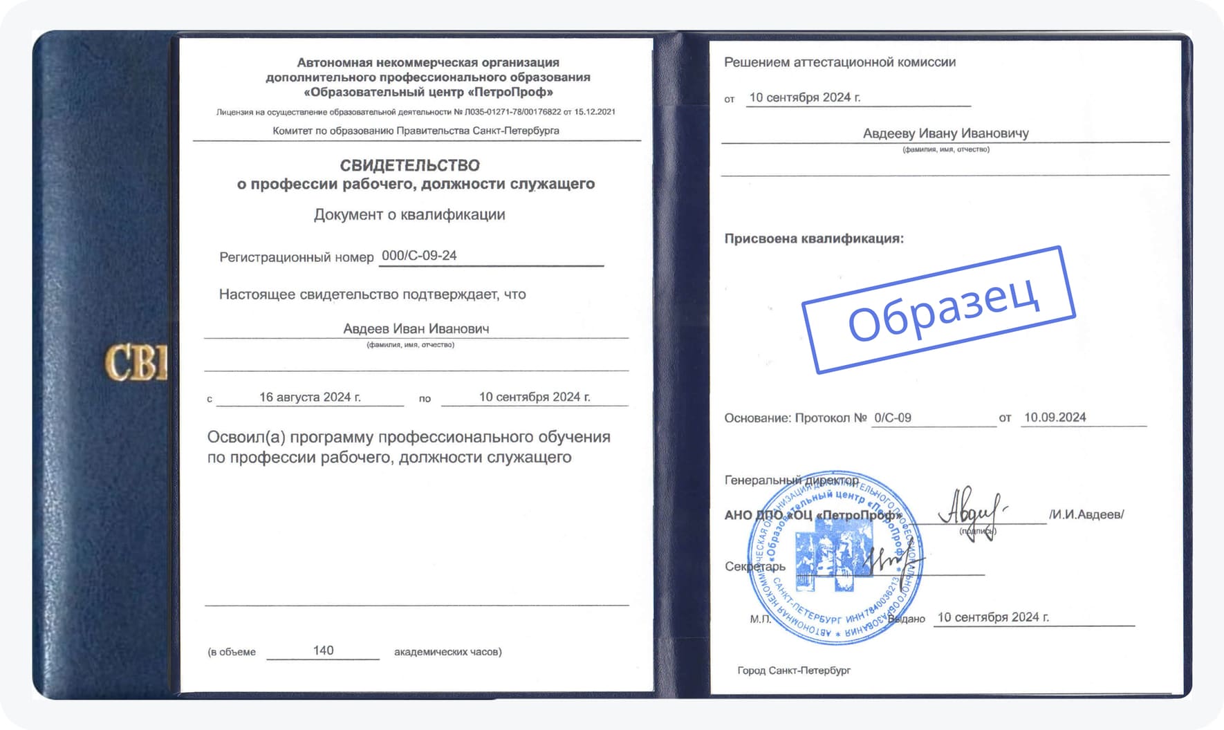 Свидетельство о профессии подтверждает окончание профессионального обучения рабочим специальностям. Оно становится главным документом при трудоустройстве и вносится в Единый реестр ФИС ФРДО. Его потребуется предоставить работодателю перед началом деятельности в компании или организации, ведь именно свидетельство отражает право заниматься определенной работой в рамках должности.